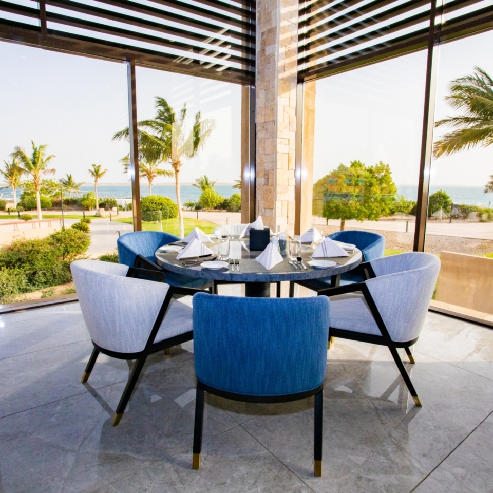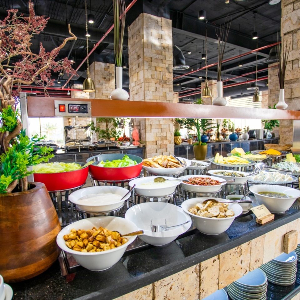 Boasting panoramic views of the sea through its expansive windows, Dara offers a captivating dining experience. The restaurant’s ambiance is further elevated by an open kitchen, where guests can witness the artistry of live cooking, including the preparation of pizza, pasta, falafel, shawarma, and more.